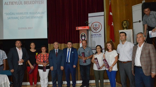 Balıkesir Altıeylül Belediyesi, Altıeylül İlçe Milli Eğitim Müdürlüğü ve Türkiye Satranç Federasyonu Balıkesir İl Temsilciliği ortaklığında düzenlenecek olan ‘Doğru Hamlede Buluşalım’ satranç projesi hayata geçiyor. Proje kapsamında 2017-2018 Eğitim ve Öğretim yılı içerisinde okula yeni başlayan 2300 öğrenciye, Altıeylül Belediyesi tarafından satranç takımı hediye edilirken, öğretmenleri tarafından da satranç eğitimi verilecek. Altıeylülilçe sınırlarıiçerisinde 31 ilkokulun 1.sınıf öğretmenlerine Hüma Hatun Kız Meslek Lisesi Konferans Salonu’ndaBalıkesir Satranç İl Temsilcisi Erdem Özgören ve 2. Kademe Satranç Antrenörü Nizamettin Güngör tarafından satranç eğitimi verildi. Düzenlenen eğitim seminerine Altıeylül Belediyesi Başkan Vekili Hasan Avcı,Altıeylül Belediye Başkan Yardımcısı Ahmet Özen, Altıeylül İlçe Milli Eğitim Müdürü İbrahim Çelik, Altıeylülİlçe Gençlik Hizmetleri ve Spor Müdürü Ahmet Akan katıldı. Programda konuşma yapan Başkan Vekili Hasan Avcı sözlerine şöyle konuştu.‘‘Belediyeciliğin en önemli görevlerinden biri sosyal belediyecilik sorumluluğunu yerine getirmektir. Sosyal belediyecilik sorumluluğunu yerine getirirken diğer kurum ve kuruluşlarla ortaklaşa yapmış olduğumuz projelerin önemi büyüktür. Altıeylül Belediyesi olarak en çok desteklediğimiz, desteklemekten büyük mutluluk duyduğumuz Altıeylül İlçe Milli Eğitim Müdürlüğümüz ve beraberinde Türkiye Satranç Federasyonu ile birlikte düzenlediğimiz ‘Doğru Hamlede Buluşalım’ projemizin ilk ayağını gerçekleştirmek için buradayız. Satranç insanlık tarihinin en eski sporlarından biridir, satranç oynamanın kişiliğin gelişmesinde olumlu faydaları vardır. Satranç oynamak planlı hareket edebilmeye, hızlı ve doğru ve kararlar alabilmeye olanak sağlar. Sabırla ve metanet ile mücadele edebilme alışkanlığı gibi daha birçok sayamadığımız özelliği insana kazandırır. Doğru hamlede buluşalım projesinin çocuklarımıza farklı ve zengin bakış açıları kazandıracağını, gelişimlerine pozitif yönde katkılar kazandıracağını düşünüyorum. Yapılmış olan bu protokolün başarılı olacağına inanıyor, 2017-2018 Eğitim ve Öğretim yılının öğretmen ve öğrencilere hayırlı olmasını diliyorum’’ dedi. Projenin protokol gereği 3 yıl süresince devam edeceği bilgisi verildi.
