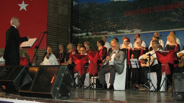 Edremit Belediyesi Altınoluk Türk Sanat Müziği Topluluğu Edremit Şükrü Tunar Kültür merkezinde unutulmayacak bir konser verdi. Dernek Yönetim Kurulu Başkanı Nursel Balcı yaptığı konuşmada, “Büyük emekler harcanarak hazırlanan çalışmalarımızın meyvesini yemek üzereyken Şefimiz Bahattin Ural ile yollarımızı ayırdık. Bizlere verdiği emeğe teşekkür ederiz.” diyerek salonu dolduran Türk Sanat Müziği severlere teşekkür etti. 21 değerli ses den oluşan koroya İstanbul’dan gelen TRT Sanatçısı İsmail Hakkı Balcı Şeflik yaparak, Koro’ya ne denli hakim olduğunu tüm izleyicilere beğendirdi. Konsere Edremit Belediyesi Kent Konseyi Başkan vekili Gürbüz Günbay, Edremit Halk Eğitim Müdürü Sedat Avcı, konserin sponsorluğunu karşılayan Sigortacı Ali Akın ve eşi, Semercioğlu Zeytincilik, Birgül Emlak ve Körfez’de Türk Sanat Müziğine gönül veren diğer Şefler ile Körfez halkı katıldı. Koro unutulmaz eserler sunarak beğeni kazandı. Klarnette İsmail Bergamalı’nın sihirli parmakları eserlere bir başka güzellik kattı. Sazendelerin birliktelikleri izleyicinin dikkatini çekti ve hep birlikte alkışları aldılar. Konser sonu Yönetim Kurulu Başkanı Nursel Balcı, değerli Koro Şefi Ağabeyi olan İsmail Hakkı Balcı’ya bir teşekkür plaketi ile bir buket çiçek sundu. Değerli klarnet ustası İsmail Bergamalıya da teşekkür plaketini veren Başkan Nursel Balcı, “İyi ki varsınız.” dedi. Haber: Aydın DEMİRKAYA