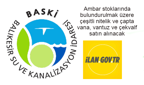 BASKİ Genel Müdürlüğü Ticaret İşleri Dairesi Başkanlığı tarafından Ambar stoklarında bulundurulmak üzere çeşitli nitelik ve çapta vana, vantuz ve çekvalf satın alınacaktır.