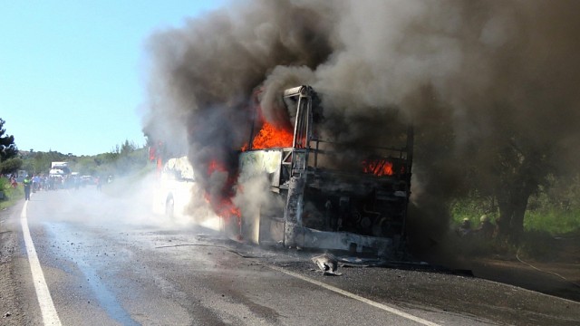 Çanakkale Kara Savaşları'nın ve Anzak Çıkarması'nın 103. yıldönümü anma törenlerine katılacak Anzakları taşıyan otobüs seyir halindeyken alev aldı. 45 Anzak'ı taşıyan otobüs tamamen yandı. Uçakla İstanbul’a gelip anlaştıkları tur şirketi ile önce Kapadokya ardından İzmir ve Balıkesir'in Ayvalık ilçesini gezen 45 kişiden oluşan Anzak kafilesi, Çanakkale Kara Savaşları'nın ve Anzak Çıkarması’nın 103'ncü yıldönümü anma törenlerine katılmak üzere otobüsle Çanakkale'ye doğru hareket etti. Ayvacık ilçesine bağlı Küçükkuyu rampalarında Ömer Tavukçu’nun kullandığı 34 JP 3604 plakalı tur otobüsünün motor kısmı alev aldı. Durumu fark eden sürücü Ömer Tavukçu, kafileyi hemen otobüsten indirdi. Anzak kafilesi söndürme çalışmalarını izlerken, Küçükkuyu Belediyesi İtfaiye ekipleri uzun uğraşlar sonunda otobüsteki alevleri söndürdü. Otobüsün bagajında bulunan valizler yangında zarar gördü. Olay yerine önce Küçükkuyu Belediye Başkanı Cengiz Balkan gelerek, söndürme çalışmalarını izledi. Ardından Ayvacık Belediye Başkanı Mehmet Ünal Şahin daha sonra da Ayvacık Kaymakamı Cevat Çelik gelerek yolcularla yakından ilgilendi. Olayda ölen ya da yaralanan olmazken, yolcular ayarlanan başka bir otobüs ile Çanakkale’ye gönderildi. (İHA)