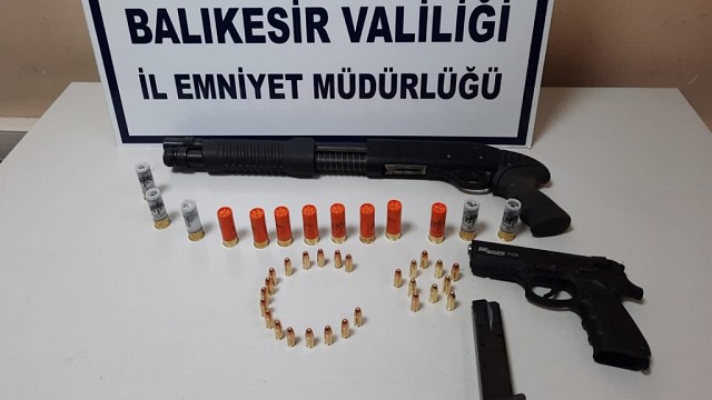 Balıkesir İl Emniyet Müdürlüğü Asayiş Şube Müdürlüğünce genel güvenliği ve asayişi sağlamak amacıyla İl Merkezi, Ayvalık, Burhaniye, Edremit ve Gömeç İlçelerinde 03.03.2021 tarihinde yapılan çalışmalarda (25) aranan şahıs yakalandı ve (9) şahıs tutuklandı. Yapılan aramalarda; (2) adet ruhsatsız Ateşli Silah ve bu silahlara ait (38) adet fişek, (2) adet ruhsatsız Tüfek ve bu tüfeklere ait (13) adet kartuş, (1) adet SİGSAUER marka 9 mm çaplı ruhsatsız ateşli silah ve bu silaha ait (26) adet fişek, (1) adet ZİGANA marka 9 mm çaplı ruhsatsız ateşli silah ve bu silaha ait (12) adet fişek, (1) adet MAGNUM marka Tüfek, (1) adet marka ve modeli bulunmayan ruhsatsız pompalı Tüfek ve bu tüfeğe ait (13) adet kartuş ele geçirildi. Haber: Pervin BÖLÜKBAŞI