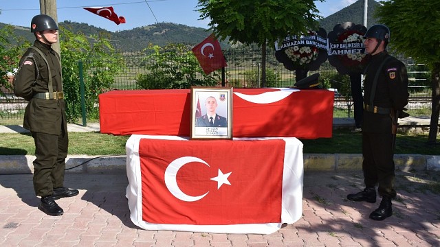 Hatay'ın Reyhanlı ilçesinde geçirdiği rahatsızlık sonucu hayatını kaybeden Astsubay Can Çelik memleketi Balıkesir’in Dursunbey ilçesinde son yolculuğuna uğurlandı. Hatay'ın Reyhanlı ilçesinde iki yıldır astsubay olarak görevini sürdüren 26 yaşındaki Can Çelik, 8 ay önce konulan ilik kanseri teşhisinin ardından Ankara'da bulunan Gülhane Eğitim Araştırma Hastanesinde tedavi görüyordu. Geçtiğimiz gün akşam saatlerinde ağırlaşan Astsubay Can Çelik doktorların tüm müdahalesine rağmen hayatını kaybetti. Astsubay Can Çelik'in cenazesi bugün Ankara'dan uçakla Edremit Havalimanına indi. Buradan memleketi Dursunbey ilçesine bağlı Beyel Mahallesi’ne getirilen Astsubay'ın cenaze törenine Dursunbey Kaymakamı Nurettin Yücel, Dursunbey Belediye Başkanı Ramazan Bahçavan,İl Jandarma Alay Komutanı Jandarma Kıdemli Albay Taner Büyükgöz, Dursunbey Garnizon komutanı Başar Akın, çeşitli kurumlardan yetkililer, vatandaşlar ve askeri personel katıldı. İkindi namazının ardından kılınan cenaze namazı sonrası askeri törenle köy mezarlığına defnedilen Can Çelik'in yakınları ise güçlükle ayakta durabildi. (İHA)