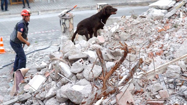 Balıkesir Büyükşehir Belediyesi İtfaiyesi’nin Yıldız Arama Kurtarma Birliği’nin üyesi kurtarma şampiyonu Ateş isimli köpek, eğitimlerini kentsel dönüşüm nedeniyle yıkılan 5 katlı 4 bloktan oluşan sitenin enkazında sürdürüyor.7/24 nöbette olan Ateş, yurt içi ve yurt dışında her canlının imdadına koşmaya hazır. Balıkesir Büyükşehir Belediyesi İtfaiye Dairesi Başkanlığı’na bağlı Yıldız Arama Kurtarma Birliği’nin üyesi arama-kurtarma ve iz sürme köpeği Ateş, olası bir afette 7/24 hazır. Geçtiğimiz Şubat ayında meydana gelen ve 11 ili etkileyen depremlerde ve İzmir depreminde enkaz arama çalışmalarında büyük rol oynayan Ateş, K9 Köpek Eğitmeni Cihan Kurtay ile birlikte her gün K9 Eğitim Merkezi’nde 8 saate yakın eğitim yapıyor. Balıkesir’in Karesi İlçesi Atatürk Mahallesi’nde deprem raporu çürük çıkan 5 katlı 4 bloktan oluşan sitenin kentsel dönüşüm projesi kapsamında yıkımına başlanıldı. Gerekli izinlerin alınmasının ardındanAteş, enkaz içerisinde saklanan objeleri bulabilmek için didik didik arama-kurtarma faaliyetlerini gerçekleştirdi. Ateş, saklanan objeleri çok kısa bir sürede içerisinde bularak eğitmeninden tam puan aldı.