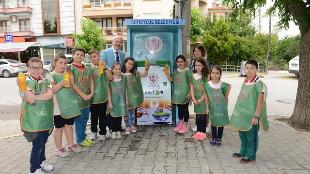 Geri dönüşüm projeleri ile çevreye duyarlılığını gösteren Altıeylül Belediyesi, daha önceden hayata geçirdiği bitkisel atık yağ toplama projesi kapsamında atık yağ toplama makinalarının sayısını çoğaltarak çevre konusundaki hassasiyetini bir kez daha ortaya koydu. Çevre kirliliğinin önüne geçerek geri dönüşüme katkı sağlamayı hedefleyen Altıeylül Belediyesi, bu alanda halkın takdirini toplamaya devam ediyor. Altıeylül ilçe sınırları içerisinde belirli noktalarda bulunan Bitkisel atık yağ toplama makinaları aynı zamanda 1 Lt atık yağ karşılığında makinanın hediye haznesinden 25 Kr hediye para veriyor. Altıeylül Belediye Başkanı Zekai Kafaoğlu ‘5 Haziran Dünya Çevre Günü’ nedeni ile Hacı İlbey Mahalle Muhtarı Mustafa Deniz ve Burhan Erdayı İlkokulu öğrencileri ile birlikteetkinlik düzenledi. Çevre duyarlılığı oluşturma amaçlı düzenlenen etkinlikte, bitkisel atık yağ toplama makinalarına atık yağ dökülerek geri dönüşüme kazanması sağlandı. Etkinlikte öğrenciler ile bir araya gelen Başkan Kafaoğlu 5 Haziran Dünya Çevre gününü kutlarken sözlerine şu şekilde devam etti. “Belediyelerin çevreye duyarsız kalması asla düşünülemez, Altıeylül Belediyesi olarak çevreye duyarlı bir belediyeyiz. Çevre bizim geleceğimiz, gelecek nesillere çok daha güzel bir çevre bırakabilmemiz için, çevreyi kirletmemek ve kirleten atıkları toplayarak geri dönüşüme kazandırmamız ve yol gösterici olmamız gerekir. Yaşaya bilmemiz için temiz hava, temiz su, temiz bir toprak lazım, buda çevreye duyarlılıkla olur” dedi. Kafaoğlu, vatandaşlarınbilinçlendirilmesi hususunda da muhtarlara büyük bir sorumluluk düşüyor dedi. Etkinlikte Altıeylül Belediye Başkanı Zekai Kafaoğlu Hacı İlbey Mahallesi Muhtarı Mustafa Deniz’i çevreye olan duyarlılığından dolayı tebrik ederek hediye takdim etti.