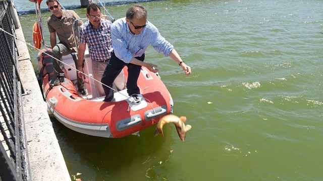 ÇAY DERESİ’NE BALIKLAR SALINDI Balıkesir Büyükşehir Belediye Başkanı Ahmet Edip Uğur’un vizyon projeleri arasında yeralan Çay Deresi Rekreasyon Alanı’nda bulunan 850 metre uzunluğundaki dev havuza balıklar salındı. Başkan Uğur, “Herkes bu Çay Deresi nasıl ıslah olur, nasıl balık dolar, nasıl balık tutulur bunu çok konuştu. Şimdi hayal edilenler gerçek oldu. Avlu Balıkesir'de tekneye biniyoruz, saltanat kayıkları da geliyor” dedi. Balıkesir Büyükşehir Belediye Başkanı Ahmet Edip Uğur’un vizyon projeleri arasında yeralan Çay Deresi Rekreasyon Alanı’nda bulunan 850 metre uzunluğundaki dev havuza balıklar salındı. Avlu Balıkesir’deki etkinlikte balıkları havuza bırakan Başkan Uğur, Balıkesirlilere verdikleri sözleri bir bir yerine getirdiklerini söyledi. Büyükşehir Belediyesi ile hayallerin gerçek olduğunu ifade eden Başkan Uğur, “Herkes bu Çay Deresi nasıl ıslah olur, nasıl balık dolar, nasıl balık tutulur bunu çok konuştu. Şimdi hayal edilenler gerçek oldu. Avlu Balıkesir'de tekneye biniyoruz, saltanat kayıkları da geliyor. Gelinler, damatlar saltanat kayıtlarında da fotoğraflarını çektirecekler. 850 metre uzunluğunda 30 metre genişliğindeki bu çok büyük havuzda insanlarımız çok güzel saatler geçirecekler. Biz balık tutturtma sözümüzü yerine getirmek için göletlerden tuttuğumuz balıkları Çay deresine bırakıyoruz. Şuanda 300'ün üzerinde balık Balıkesir'de Çay Deresi’ne bırakıldı. Bunlar yumurtlayıp ürüyecek ve amatör olta balıkçılarımız ile birlikte, balık avcıları balık tutma zevkini yaşayacaklar. Çamlık Tepesi inşaatı da devam ediyor. Hilal minareli Cami ile birlikte önümüzdeki bayram Avlu’dan teleferik ile Çamlık Tepesine çıkarak namazımızı kılacağız. Balıkesir marka şehir olma yolunda hızla ilerliyor” diye konuştu.