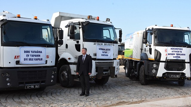 Ayvacık Belediyesi'nden hizmet araçlarına depreme karşı farkındalık pankartları
