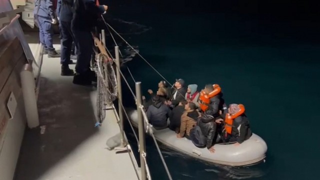 AYVALIK AÇIKLARINDA LASTİK BOT İÇERİSİNDEKİ 12 DÜZENSİZ GÖÇMENİ SAHİL GÜVENLİK EKİPLERİ KURTARDI