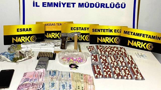 Balıkesir İl Emniyet Müdürlüğü Ayvalık Narkotik Suçlarla Mücadele Büro Amirliği ekiplerinin zehir tacirleri ile mücadelesi kararlılıkla devam ediyor. Balıkesir Valiliğinden yapılan basın açıklamasında, “Balıkesir İl Emniyet Müdürlüğü Ayvalık Narkotik Suçlarla Mücadele Büro Amirliğince 23.06.2024 günü yapılan saha çalışmaları kapsamında (1) şüpheli şahsın üzerinde ve ikametinde yapılan aramalarda; 208 adet Ectasy hap, 199 adet Sentetik Ecza hap, 4.60 gram Esrar maddesi, 1.99 Gram Metamfetamin maddesi (2 parça halinde), 1 adet çalışır vaziyette Hassas terazi, 1 adet 7.65 mm çapında ruhsatsız tabanca ve 51 adet fişek, 1 adet cep telefonu, 2 parça halinde ve 1 top halinde uyuşturucu madde satışında paketlemede kullanıldığı değerlendirilen alüminyum folyo, Uyuşturucu Madde Ticaretinden Elde edildiği değerlendirilen 3.870 TL para ele geçirilmiştir. Konuyla ilgili (1) şahıs hakkında Uyuşturucu veya Uyarıcı Madde İmal ve Ticareti suçundan tahkikata başlanılmıştır. Kamuoyuna saygıyla duyurulur.” Denildi. Haber: İlhan ERGÜDER