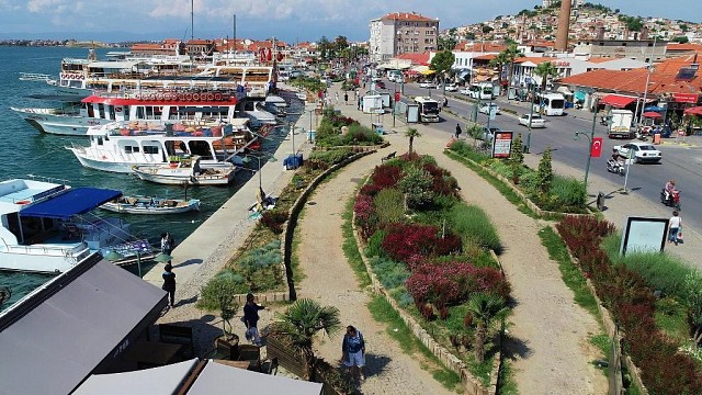 Ayvalık’ın sahil bandı, günlük koşuşturmalar sırasında nefes alınabilecek, çiçekler arasında denizin seyredilebileceği bir keyifli bir ortam sunuyor. Ayvalık’ın Cumhuriyet Meydanı ile 06 mevkii arasında kalan sahil bandında, Ayvalık Belediyesi tarafından geçen yaz başında yapılan düzenleme ile özel ahşap malzeme ile çevrelenip, bitkilerle donatılan bölümler, rengârenk bir görünüme büründü. Lavanta, berberis, kekik, pitos, gavura, taflan, manolya bitkileri ile kaplanan yeşil dokunun arttırıldığı sahilde, 1950 yıllarından kalma tren raylarından elde edilen traveslerle oluşturulan 15 bölüm yer alıyor. Bölümlerde çalı bitkileri ve aralarına yerleştirilen süs bitkilerinin yanı sıra 3 adet zeytin ağacı, 2 adet sakız ağacı bulunuyor. Yenilenen bankları ve doğal dokusu ile Ayvalık sahili, vatandaşların denizle bağlantısını güçlendirme işlevini yerine getiriyor.