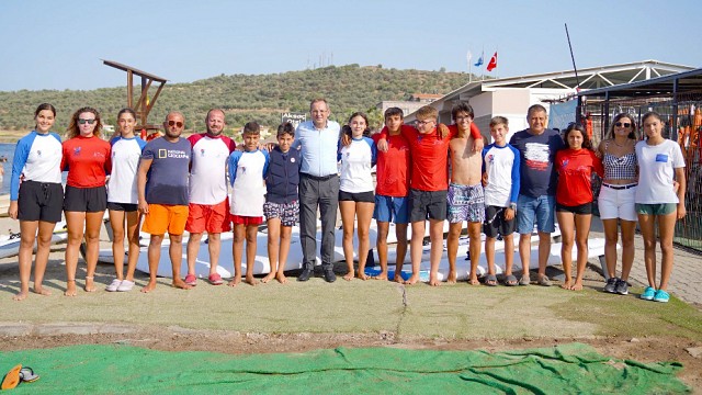 Nisan ayında İtalya’da gerçekleşen Avrupa Şampiyonası'nda ülkemizi başarıyla temsil eden, bir de Avrupa Şampiyonluğu kazandıran Ayvalıklı gençler bu kez Fransa’da yapılacak olan Techno 293 Dünya Şampiyonası’nda Türk Milli Takımının başarısı için mücadele edecek. Nisan ayında İtalya-Garda’da Türkiye Milli takımı ve aynı zamanda Cunda Rüzgâr Sörfü Yelken ve Spor Kulübü sporcularından Nurhayat Güven, U17 kategorisinde büyük bir başarı göstererek Avrupa Şampiyonu olmuş, Türk Bayrağını dalgalandırmış, İstiklal Marşımızı okutarak göğsümüzü kabartmıştı. 29 Temmuz-5 Ağustos tarihleri arasında Fransa’nın Queberon şehrinde gerçekleştirilecek olan şampiyona öncesi Arka Deniz Plajı’nda Cunda Rüzgâr Sörfü Yelken ve Spor Kulübü’nde gençlerle bir araya gelen Ayvalık Belediye Başkanı Mesut Ergin, sporculara başarılar diledi, yeni şampiyonluklar beklediğini söyledi. Belediye Başkanı Mesut Ergin, “Dünya Şampiyonası’na Cunda Windsurf Yelken ve Spor Kulübü’nden beş Milli sporcumuzun yanı sıra kulüp Antrenörü Buğra Mehmet Kandiş de Milli Takım antrenörü olarak Türkiye’mizi teslim edecek. Gençlerimiz uluslararası alanda Türkiye’nin ve Ayvalık’ın ismini en iyi noktalara ulaştırmak için yarışıyor. Bu anlamda büyük bir gurur yaşıyoruz. Kentimize kazandırdığımız, Cunda Arka Deniz Plajı’nda kurulmasına destek verdiğimiz Cunda Windsurf Okulu’nun beş genç öğrencisi çok önemli bir başarı elde etti ve Ay Yıldızlı bayrağımızı temsil hakkı kazandı. Türkiye Yelken Federasyonu ile kentimize kazandırdığımız yelken ve sörf yarışlarıyla daha çok gencimizi bu sporlara teşvik etmeyi amaçlıyoruz. Ayvalık'ta pek çok gencin yetiştiği iki rüzgar sörfü okulunun açılmasının bu başarıdaki payı büyük. Türk sporuna ve Ayvalık’ta spora, turizme katkı sağlamaya devam edeceğiz. Nurhayat Güven, Orhan Emre Kandemir, Eşref Jale, Toprak Doğan ve Mert Toygar’ı gösterdikleri başarılardan dolayı tebrik ediyor, Dünya Şampiyonası’nda rüzgarların bol olmasını diliyoruz” dedi. Milli Takım antrenörü Buğra Mehmet Kandiş de, amatör bir ruhla başlayan Windsurf sporunun, süreç içinde ulusal ve uluslararası başarılara imza attığını belirterek, “Yaz aylarında yerli yabancı misafirlerimizi ağırlayıp onlara da hizmet veriyoruz. Her geçen gün bu spora olan ilgi artıyor. Cunda Arka Deniz Plajı denildiğinde herkesin aklına Windsurf geliyor. Bu da bize mutluluk veriyor. Kulübümüzün kuruluşunda bize yer gösteren, maddi ve manevi desteğini esirgemeyen Belediye Başkanımız Mesut Ergin çok teşekkür ediyoruz. Şampiyonadan başarıyla dönüp madalyamızı başkanımıza getireceğiz” diye konuştu.