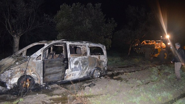 Ayvalık'ta yanmış halde lüks minibüs bulundu