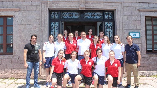 Ayvalık Belediye Başkanı Rahmi Gençer, başarıdan başarıya koşan Ayvalıkgücü Belediyespor kız voleybol takımları, yıldızlar ve kız takımını ağırladı. Geçtiğimiz hafta düzenlenen Festival Voleybol adıyla, ikinci kez düzenlenen Türkiye Voleybol Federasyonu Altyapılar Türkiye Şampiyonası genç kızlar finalinde katılan Ayvalıkgücü Belediyespor, sekizinci oldu. Ziyarette Kulüp yöneticisi Salman Kayran, Voleyboldan Sorumlu Yönetici Saki Bacan, Kulüp Antrenörü Sedat Oğuz’un yanı sıra yıldız ve genç takımlarından voleybolcu kızlar katıldı. Şampiyona Finalinde, Rota Koleji'ni 25-16, 25-15 ve 25-9'luk setlerle 3-0 mağlup eden Vakıfbank 2016 - 2017 sezonunun şampiyonu olmuştu. Şampiyonada, Halk Bank üçüncü, İzmir Karşıya dördüncü, Beşiktaş beşinci, Fenerbahçe altıncı, İlbank yedinci, Ayvalıkgücü Belediyespor sekizinci, Eczacıbaşı dokuzuncu, Galatasaray ise onunculuğu elde etmişti. Finallere katılan tüm takımların Süper Liğte takımları olduğunu vurgulayan takım antrenörü Sedat Oğuz, çok tecrübeleri takımlarla oynadıkların altını çizdi. Oğuz, Önümüzdeki yıl takımlarının Türkiye Finali’ne seri başı olarak katılacağını belirtti. Takımlarına maddi manevi desteklerini arkalarında her zaman itici bir güç olarak gördükleri için Başkan Rahmi Gençer’e teşekkür ettiklerini ifade etti. Tüm kızları tek tek tebrik ettiğini, gurur verdiğini söyleyen Ayvalık Belediye Başkanı Rahmi Gençer, kızların müthiş bir başarı elde ettiklerini ifade etti. Gençer’’ Bu takım olarak, seyahat etmek, farklı şehirler görmek eminim sizin için çok güzel bir deneyim olmuştur. İlerde bu keyifli izlenimlerinizi hiç unutmayacaksınız. Bizi ve Ayvalık’ı çok mutlu ettiniz. Başarılarınızın devamını diliyorum ’’dedi. Belediye Başkanı Rahmi Gençer, genç voleybolcuları her zaman olduğu gibi hediye çekiyle ödüllendirmeyi ihmal etmedi.