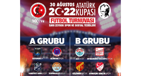 Balıkesir’in Ayvalık İlçesinde, 30 Ağustos Atatürk Kupası Futbol Turnuvası 17 Ağustos'ta (BUGÜN) başlıyor. Ayvalık Belediyesinden konuyla ilgili olarak yapılan paylaşımda, “Ayvalık Belediyesi ile Atatürkçü Düşünce Derneği'nin girişimiyle, Balıkesir Amatör Spor Kulüpleri Federasyonu (ASKF) temsilcisi Cemal Erhanoğlu'nun organize ettiği turnuvanın bu yıl üçüncüsü düzenleniyor. Ayvalık Belediyesi Sarı Zeybek Spor ve Sosyal Tesisleri'nde düzenlenen organizasyonda Ayvalık'ın sekiz futbol kulübünün minik futbol takımları karşı karşıya gelecek. 17 Ağustos saat 17.30'da Batıordu SK ve Altınovaspor'un karşılaşmasıyla başlayacak organizasyon 30 Ağustos Zafer Bayramı'nda sona erecek.” Denildi.
