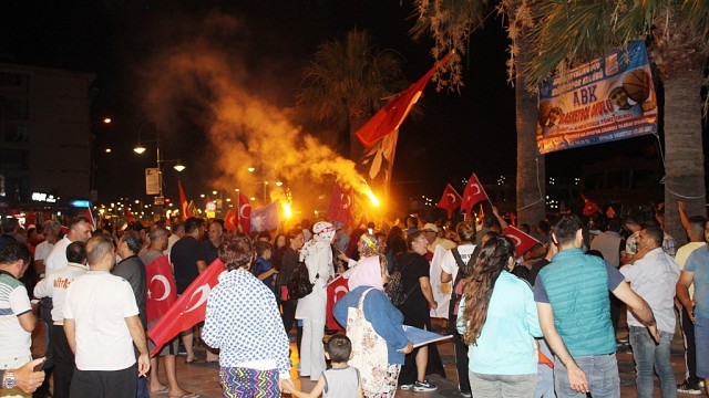 Ayvalık’ta AK Partililer seçim zaferini coşkuyla kutladı. AK Parti Ayvalık İlçe Başkanı Hasan Kıtay’ın öncülüğünde, ilçe teşkilatı yöneticileri ve yüzlerce partilinin davul ve zurnalarla ilçe merkezindeki Cumhuriyet Meydanı’nda seçim galibiyetini davul ve zurnalarla kutlaması renkli görüntüleri de beraberinde getirdi. Havai fişeklerin gökyüzünü aydınlattığı coşkulu gecede muhabirimize açıklamalarda bulunan AK Parti Ayvalık İlçe Başkanı Hasan Kıtay, Türkiye’nin Başkanlık Sistemi ile yepyeni bir döneme girdiğini hatırlatarak, “Cumhurbaşkanımız ve partimizin Genel Başkanı Sayın Recep Tayyip Erdoğan öncülüğünde 2023 ve 2071 hedeflerimize hızla ilerleyecek ve ülkemizi dünyanın süper güçlerinden biri haline getireceğiz” diye konuştu. (İHA)