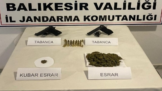 Balıkesir İl Jandarma Komutanlığı ekipleri il genelinde; emniyet, asayiş ve kamu düzeninin sağlanmasına yönelik çalışmalara aralıksız olarak devam ediyor. Balıkesir İl Jandarma Komutanlığınca, uyuşturucu madde imal ve ticaretine yönelik yapılan istihbari çalışmalar neticesinde Ayvalık İlçesinde uyuşturucu madde bulundurduğu tespit edilen (3) şüphelinin ikamet adresinde yapılan aramada; (40) gram kubar esrar ve (2) adet tabanca ele geçirilmiştir. Olaya karışan (3) şüpheli hakkında adli tahkikata başlanılmıştır. Haber: Aydın DEMİRKAYA