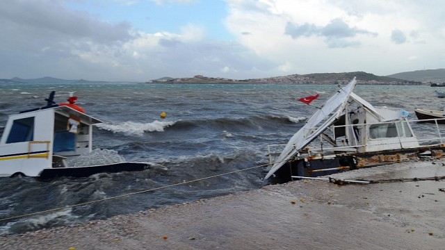 Ayvalık’ta lodos küçük balıkçı teknelerini batırdı