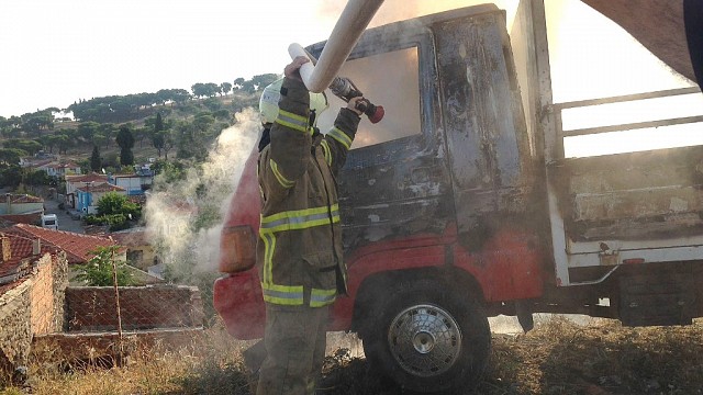 Balıkesir’in Ayvalık ilçesinde park halindeki kamyonette çıkan yangın itfaiye ekiplerince söndürüldü. Arif Kahraman’a ait park halindeki kamyonette henüz bilinmeyen nedenle yangın çıktı. Komşuların ihbarıyla olay yerine gelen Ayvalık İtfaiye Amirliği ekipleri, kısa sürede yangını söndürdü. Yanan kamyonet kullanılamaz hale geldi. (İHA)