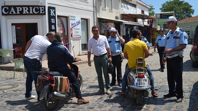 Balıkesir’in Ayvalık ilçesinde, İlçe Emniyet Müdürlüğü bünyesindeki Trafik Denetleme Büro ile Asayiş Şube Amirlikleri ekipleri ortak bir çalışma ile yasalara aykırı motosikletlere yönelik uygulama yaptı. İlçe merkezindeki Polis Karakolu önünden başlayıp, Barbaros Caddesi, tarihi At Arabacılar Meydanı, Talatpaşa Caddesi ve Edremit Caddesi’nde gerçekleşen uygulamalarda kasksız, ehliyetsiz ve plakasız motosiklet kullanan sürücüler cezalandırılırken, kurallara aykırı motosikletler ise trafikten men edildi. Ekipler tarafından her zaman yapılan kontrollerin, yaz aylarında motosiklet kullanımının artması ve bu yüzden de çoğunlukla ölümlü yada yaralanmalı kazaların yaşanması nedeniyle yaz sezonu süresince sıklaştırıldığı öğrenildi. Öte yandan bazı motosiklet sürücüleri ise normal şartlarda ilçenin tek ana arteri olan Atatürk Caddesi üzerinde yapılan denetimlerin, kentin iç kesimlerindeki yollarda yapılmaya başlanmasını şaşkınlıkla karşıladığı gözlendi. Vatandaşlar ise İlçe Emniyet Müdürlüğü tarafından yapılan motosiklet denetimlerine yönelik uygulamayı memnuniyetle karşıladı. (İHA)