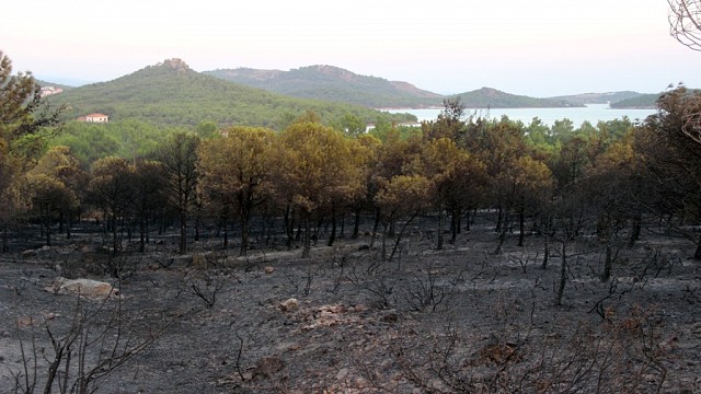 Balıkesir’in Ayvalık ilçesi Hakkıbey Yarımadası’nda çıkan orman yangını sonrası ortaya çıkan görüntü yürekleri burktu. Hakkıbey Yarımadası’nda saat 16.00 sıralarında başlayan orman yangını kısa sürede poyraz rüzgarının da etkisiyle yayıldı. Yangını 2 amfibik uçak, 4 helikopter, 32 araröz ve 3 dozer müdahale etti. Yangın havadan ve karadan yapılan müdahaleler ile kontrol altına alındı. Yangın sonrasında yeşil doğası ile birçok turisti bölgeye çeken Hakkıbey Yarımadasında 3 hektarlık çam ormanı küle döndü. Tabiat Parkında çıkan yangın sonrasında yeşil adeta siyaha boyandı. İtfaiye ekipleri bölgede akşam saatleri olmasına rağmen soğutma çalışmalarını aralıksız devam ettiriyor. Tedbir amaçlı boşaltılan sitelere ise vatandaşlar dönmeye başladı. Ayvalık Belediye Başkan Vekili Gökay Bacan, “Hep birlikte müdahale ettik. Büyükşehir Belediyesine ait itfaiye ekipleri, Ayvalık Belediyesine ait iş makinaları, helikopterler ve uçaklar ile daha büyük bir facianın önüne geçildi ve engellendi. Yangın kontrol altında soğutma çalışması yapılıyor” dedi. Çıkış sebebinin daha tam tespit edilemediğini ifade eden Bacan, “Muhtemelen bir sigara izmaritinden şüpheleniliyor. Can ve mal kaybımız yok şu anda. Sadece ormanlık ve makilik alanlarımız yanmış durumda” dedi. (İHA)