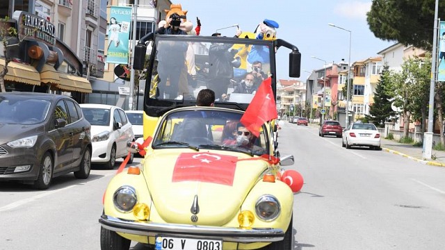 Balıkesir Büyükşehir Belediye Başkanı Yücel Yılmaz, sokağa çıkma yasağı nedeniyle 23 Nisan Ulusal Egemenlik ve Çocuk Bayramı’nı evlerinde kutlamak zorunda kalan Balıkesirli çocuklara muhteşem bir sürpriz yaptı. Tüm yurtta ve dünyada etkisini sürdüren koronavirüs tedbirleri kapsamında evlerinden çıkmayan çocuklar, 23 Nisan Ulusal Egemenlik ve Çocuk Bayramı’nı ilk kez evlerinde kutladı. Büyükşehir Belediye Başkanı Yücel Yılmaz ise 23 Nisan kutlamalarını, evlerinden çıkamayan çocukların ayaklarına götürdü. İçerisinde maskotların olduğu, çocuk şarkılarının çaldığı üzeri açık otobüs ve beraberindeki 10 adet vosvos ile şehir turu atan Başkan Yücel Yılmaz, sokağa çıkma yasağı nedeniyle bayram coşkusunu evlerinde yaşayan çocukların sevincine ve heyecanına ortak oldu. En güzel kıyafetleri ve ellerindeki Türk Bayrakları ile konvoyu balkondan coşkuyla izleyen çocukları ve ailelerini otobüsten selamlayan Başkan Yücel Yılmaz "23 Nisanımız kutlu olsun. Çocuklarımıza, Gazi Mustafa Kemal Atatürk tarafından armağan edilen 23 Nisan Ulusal Egemenlik ve Çocuk Bayramımızın 100. yılı kutlu olsun. 23 Nisan’da evlerimizdeyiz ama sizler için bayramın coşkusunu sokağınıza kadar getirdik. Sizleri seviyorum." dedi.