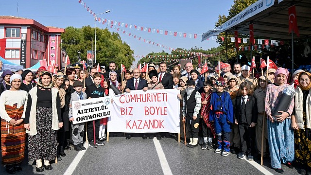Balıkesir’de 29 Ekim Cumhuriyet Bayramı, gencinden yaşlısına kadar her kesim tarafından coşkuyla kutlanıyor. Kutlama programı kapsamında Kuvâ-yi Milliye Meydanı’nda kutlama ve geçit töreni gerçekleştirildi. Kortej geçişi esnasında pek çok vatandaş, gözyaşlarına hakim olamadı. Balıkesir Büyükşehir Belediye Başkanı Ahmet Akın, 29 Ekim Cumhuriyet Bayramı kutlamaları kapsamında, Balıkesir Valiliği’nde düzenlenen törene katıldı. Valilikteki törenin ardından, Balıkesir Valisi İsmail Ustaoğlu, Garnizon Komutanı Hv. Tümg. Hüseyin Duman ve Balıkesir Büyükşehir Belediye Başkanı Ahmet Akın Kuva-yi Milliye Caddesi’nde tören aracıyla alandaki vatandaşları selamladı. Saygı duruşunda bulunulması ve İstiklal Marşı’nın okunmasıyla başlayan törende, Mehmet Ağa Safaroz Anadolu Lisesi öğrencisi Alperen Yılmaz, “Cumhuriyet’e şiir” ve Gülser-Mehmet Bolluk Anadolu Lisesi Öğrencisi Behra Balcı “Yüzyıllık Cumhuriyet” şiirleri okudu. Daha sonra Yarış Ortaokulu ve 15 Temmuz Şehitler Anadolu Lisesi’nin halkoyunlarıyla Büyükşehir Belediyesi tarafından hazırlanan zeybek gösterisi ilgiyle izlendi. Programda son olarak gerçekleştirilen Geçit Töreni protokol ve vatandaşlar tarafından ilgiyle izlendi. Vatandaşların bayraklarla ve alkışlarla eşlik ettiği geçitte askeri birlikler, gaziler, izci ve sporcular, birçok okuldan öğrenciler, kamu kurum ve kuruluşlarının hizmet araçları ile askeri araçlar yer aldı.