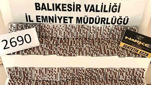 Balıkesir İl Emniyet Müdürlüğü Narkotik Suçlarla Mücadele Şube Müdürlüğü ekiplerimiz İl merkezi ve İlçeler’de zehir tacirlerinin yakalanmasına yönelik mücadeleye aralıksız olarak devam ediyor. Balıkesir İl Emniyet Müdürlüğü’nden yapılan açıklamada, “Balıkesir İl Emniyet Müdürlüğü Narkotik Suçlarla Mücadele Şube Müdürlüğünce 07.08.205 günü il merkezinde yürütülen çalışmalarda; 2690 adet sentetik ecza hap maddesi ele geçirilmiştir. Konuyla ilgili yakalanan 3 şahıs hakkında "Uyuşturucu veya Uyarıcı Madde İmal ve Ticareti" suçundan işlem başlatılmıştır. Kamuoyuna saygıyla duyurulur.” Denildi. Haber: Hasan AKAR
