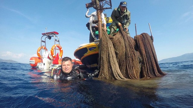 BALIKESİR İTFAİYESİ SU ALTI YAŞAMINI TEHDİT EDEN AĞI DENİZDEN ÇIKARTTI