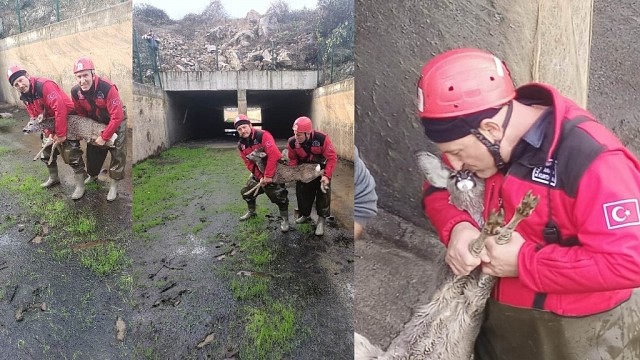 BALIKESİR MANYAS’TA SULAMA KANALINA DÜŞEN YAVRU KARACA’YI İTFAİYECİLER KURTARDI