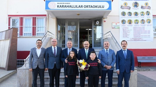 Balıkesir Valisi İsmail Ustaoğlu geçtiğimiz günlerde, Karesi ilçesinde bulunan Karahallılar Ortaokulu'nu ziyaret ederek öğrenciler ve öğretmenlerle bir araya geldi. Balıkesir İl Milli Eğitim Müdürlüğü’nden yapılan açıklamada, “Ziyarette Vali Ustaoğlu'na, Karesi Kaymakamı Metin Arslanbaş, İl Millî Eğitim Müdürümüz Murat Demir ve Karesi İlçe Millî Eğitim Müdürü Sami Günnü eşlik etti. Okulun genel durumu hakkında bilgi alan Vali Ustaoğlu, sınıfları gezerek öğrencilerle sohbet etti. Öğrencilerin derslerine ve okul ortamına gösterdikleri ilgiden memnuniyet duyduğunu belirten Ustaoğlu, öğrenmenin en güçlü yolunun okuma alışkanlığı kazanmak olduğunu vurguladı. Vali Sayın İsmail Ustaoğlu; "Kitap okumak, sadece derslerde değil, hayatın her alanında başarıya giden yolu açar. Sizler azimle, disiplinle çalıştığınız sürece hedeflerinize mutlaka ulaşırsınız." diyerek öğrencileri motive etti. Ziyaret kapsamında öğretmenlerle de bir araya gelen Vali Ustaoğlu, eğitim-öğretim süreçleri ve öğrencilerin gelişimine yönelik değerlendirmelerde bulundu. Öğretmenlerin özverili çalışmalarından dolayı teşekkür eden Ustaoğlu, güçlü bir geleceğin temelinin nitelikli eğitimle atılabileceğini ifade etti. İl Millî Eğitim Müdürümüz Murat Demir ise, Valimizin eğitim camiasına verdiği destekten duydukları memnuniyeti dile getirerek teşekkürlerini iletti. İl Millî Eğitim Müdürlüğü olarak Sayın Valimize eğitime verdikleri değerli katkılar ve destekleri için teşekkür ederiz.” denildi. Haber: Hasan AKAR