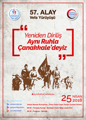 YENİDEN DİRİLİŞ VE AYNI ÇANAKKALE RUHU İLE GENÇLİK VEFA YÜRÜYÜŞÜ Balıkesir Gazeteciler Cemiyetinden yapılan basın açıklamasında, “Kuva-yi Milliye Şehri Balıkesir, "57. Alay Vefa Yürüyüşü"nde buluşacak. “Yeniden Diriliş ve Aynı Ruhla Çanakkale’ deyiz” sloganıyla Türkiye'nin dört yir yanında aynı anda gerçekleşecek 25 Nisan'daki etkinlik İmam Hatip Lisesi Camisinde kılınacak sabah namazıyla başlayacak, Şehitlikteki duayla son bulacak. Çanakkale Kara Savaşları'nın 103. yılı kapsamında Çanakkale Şehitlerimizi anmak, onları yâd etmek için "Gençlerden Şehitlere Vefa: 57. Alay Vefa Yürüyüşü" Balıkesir ve tüm Türkiye’de aynı anda düzenlenecek programla yapılacaktır. Gençlik ve Spor Bakanlığı tarafından “Yeniden Diriliş ve Aynı Ruhla Çanakkale’ deyiz” sloganıyla 81 ilde 25 Nisan Çarşamba günü Çanakkale şehitlerine 57. Alay Vefa Yürüyüşü düzenlenecektir. Program Kuvayı Milliye Şehri Balıkesir’imizde İmam Hatip Lisesi Camii’nde kılınacak sabah namazıyla başlayacaktır. Namaz öncesi vaazın da yapılacağı program, namaz sonrasında 57. Alay’ın yemeği olan yarma çorbası ikramı ile devam edecektir. 08.00’de Balıkesir İmam Hatip Lisesi önünde Mehter Takımı eşliğinde başlayacak olan yürüyüş korteji Şehitliğe kadar devam edecek. Şehitlikte yapılacak program ve sonrasında yapılacak dua ile sona erecektir. 57.Alay Vefa Yürüyüşü Çanakkale Şehitlerini Anma Programına tüm halkımız davetlidir.” Denildi.