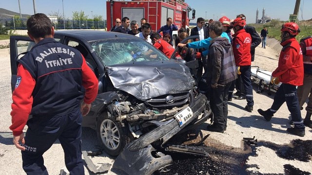 Balıkesir'de meydana gelen kazada iki aracın çarpışması sonucu 3 kişi yaralandı. Balıkesir'de meydana gelen kazada iki araç kullanılamaz hale geldi. Balıkesir - Savaştepe yolu üzerinde Organize Sanayi Lojistik köyü kavşağında meydana gelen kazada 10 U 8984 plakalı araç ile 34 VU 099 plakalı aracın çarpışması sonucu 3 kişi yaralandı. Kazada Ahmet Çiftçi, Cevdet Karabulut ve Mehmet Uysal İtfaiye ekipleri tarafından sıkışıkları araçtan çıkartıldı. Yaralılar olay yerine gelen 112 ekipleri tarafından hastaneye kaldırıldı. Kazayla ilgili soruşturma sürüyor. (İHA)