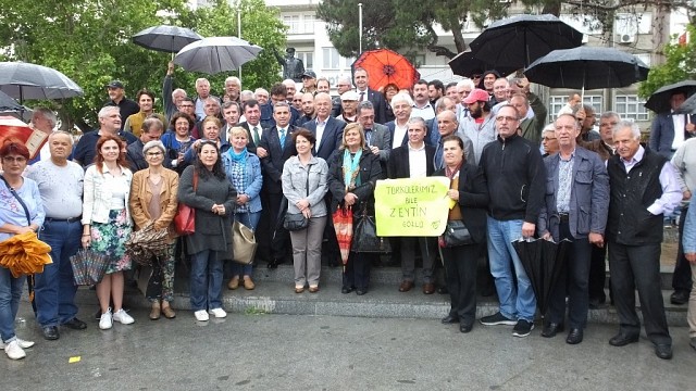 Balıkesir'in Burhaniye ilçesinde Çevre Platformu öncülüğünde bir araya gelen Burhaniye, Edremit ve Ayvalıklı zeytinciler, “3573 Sayılı Zeytin Ağacı Koruma Kanunu”nun değiştirilme girişiminden vazgeçilmesini istedi. Cumhuriyet Meydanı'nda yağmur altında bir araya gelen zeytin üreticileri, yarın TBMM Sanayi Ticaret Enerji Tabi Kaynaklar Bilgi ve Teknoloji Komisyonunda ele alınacak “3573 Sayılı Zeytin Koruma Kanunu”nun aynen kalması gerektiğini belirtti. Çevre Platformu Başkanı Avukat Filiz Sonsuz, “Zeytinlik alanın tanımını değiştiren, zeytinliklerimizi termik santrale, toplu konuta, sanayi tesislerine, maden ve taş ocaklarına dönüştürüp zeytini ve zeytin üreticisini yok edecek olan yasa tasarısı, yarın TBMM Sanayi, Ticaret Enerji, Tabii Kaynaklar, Bilgi ve Teknolojileri Komisyonunda görüşülecektir. Tasarı komisyondan ve meclis genel kurulundan onaylanarak geçerse zeytinlik alanların tanımı tamamen değişecektir. Biz bu yasanın değişmemesini istiyoruz” dedi. Ayvalık Zeytin Üreticileri Derneği Başkanı Aydın Şansal, ” Tasarı geçerse zeytinlik tanımı değişecektir. Değişiklik geçerse dekarda 15 adetten az ağaç olan yerler zeytinlik sayılmayacaktır. Buna göre de ülkede zeytinlik kalmayacaktır. Eski zeytinlikler seyrek dikildiği için bu vasfa uygun zeytinlik yoktur. Bütün zeytinlikler zeytinlik kapsamından çıkacaktır. Zeytinyağı ilaçtır. Ülsere çaredir. Yarayı iyileştirir. Zeytinyağı bebeğin kremidir, kanserin düşmanıdır. Yasanın geçmesi halinde, yediği içtiği her şeyden kuşku duyan halkın sağlıklı besine ulaşma hakkı engellenecektir. Yasanın geri çekilmesini istiyoruz” diye konuştu. Toplantının ardından katılımcılar, meydandaki zeytin ağacına kağıtlar asarak dilek ağacına çevirdi. Zeytinciler, açıklamanın ardından sessizce dağıldı. Basın açıklamasına, CHP Balıkesir Milletvekili Mehmet Tüm, Ayvalık Belediye Başkanı Rahmi Gencer, Edremit Belediye Başkanı Kamil Saka, CHP il ve ilçe başkanları ve üretici ile bazı oda başkanları katıldı. (İHA)