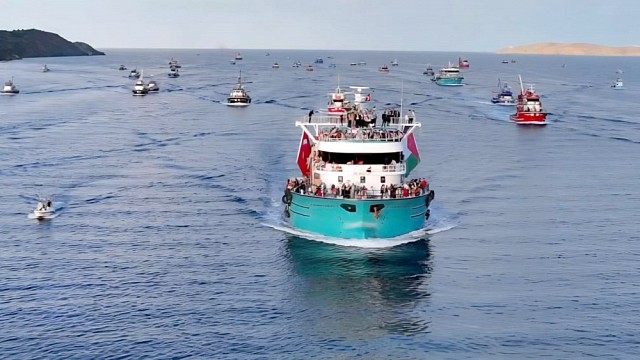 Konuşmaların ardından, Filistin ve Küresel Sumud Filosu’na destek olmak, İsrail’in saldırılarını protesto etmek amacıyla tekneler Marmara Denizi’ne açıldı. Türk ve Filistin bayraklarıyla donatılan gemi ve tekneler, Marmara sularında “vicdanın ve kardeşliğin” sesi oldular.