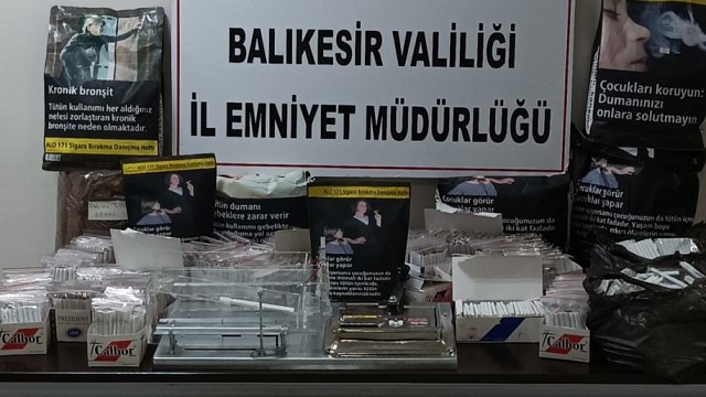 Balıkesir İl Emniyet Müdürlüğünün, Alkol, Tütün ve Tütün Mamülleri Kaçakçılığıyla mücadelesi devam ediyor. Balıkesir İl Emniyet Müdürlüğü Balıkesir Kaçakçılık ve Organize Suçlarla Mücadele Şube Müdürlüğü görevlilerince Alkol, Tütün ve Tütün Mamülleri Kaçakçılığını önlemeye yönelik çalışmalar neticesinde; Şüpheliye ait ikamette yapılan aramada;4 Adet Sigara Sarma Makinesi, 9.5 kg Kıyılmış Tütün, 12.420 Adet Doldurulmuş Makaron ele geçirilmiştir. Yakalanan 2 şüpheli hakkında 5607 SKM suçundan işlem yapılmıştır. Haber: Aydın DEMİRKAYA