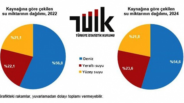 TÜİK’ten edinilen bilgiye göre; Ülkemizde su kaynaklarından 20,3 milyar m³ su çekildi. Balıkesir’de 2024 yılında belediyeler tarafından su kaynaklarından 139,9 milyon m³ su çekildi. Çanakkale’de 2024 yılında belediyeler tarafından su kaynaklarından 40,6 milyon m³ su çekildi. Su ve Atıksu İstatistikleri, 2024 Türkiye İstatistik Kurumu, su ve atıksu istatistikleri kapsamında Türkiye'deki; 50 ve üzeri çalışanı olan imalat sanayi işyerlerinden, kurulu gücü 100 MW ve üzeri olan tüm faal termik santrallerden, altyapısı tamamlanmış tüm Organize Sanayi Bölgeleri (OSB) müdürlüklerinden, Maden ve Petrol İşleri Genel Müdürlüğüne referans yıl için üretim beyan eden maden işletmelerinden ve tüm belediyelerden veri derlemektedir. Su kaynaklarından 20,3 milyar m3 su çekildi Araştırma kapsamındaki belediyeler, imalat sanayi işyerleri, termik santraller, OSB müdürlükleri, maden işletmeleri ve köyler tarafından 2022 yılında su kaynaklarından toplam 19,2 milyar m3 su çekilirken, 2024 yılında ise toplam 20,3 milyar m3 su çekildi. 2024 yılında çekilen suyun %54,6'sı denizden; %23,6'sı yeraltı ve %21,8'i yüzey suları olmak üzere toplam %45,4'ü tatlı su kaynaklarından temin edildi. Denizden çekilen suyun yüzde %93,8'i soğutma amaçlı temin edildi. 2024 yılında tatlı su kaynaklarından çekilen suyun %81'i belediyeler, %7,3'ü imalat sanayi işyerleri, %5,8'i maden işletmeleri ile OSB müdürlükleri, %4,3'ü köyler ve %1,6'sı termik santraller tarafından temin edildi. Alıcı ortamlara 17,2 milyar m3 atıksu deşarj edildi Belediyeler, imalat sanayi işyerleri, termik santraller, OSB müdürlükleri, maden işletmeleri ve köyler tarafından 2024 yılında doğrudan alıcı ortamlara toplam 17,2 milyar m3 atıksu deşarj edildi. Doğrudan alıcı ortamlara deşarj edilen atıksuyun %75,9'u denizlere, %19,5'i akarsulara, %1,1'i barajlara, %0,8'i foseptiklere, %0,6'sı göl/göletlere, %0,2'si araziye, %1,9'u ise diğer alıcı ortamlara deşarj edildi. Denize deşarj edilen atıksuyun yüzde % 80,1'i soğutma suyundan oluştu. 2024 yılında toplam atıksuyun %50,2'si termik santraller, %31,9'u belediyeler, %13,8'i imalat sanayi işyerleri, %1,7'si OSB müdürlükleri, %1,6'sı maden işletmeleri, %0,8'i ise köyler tarafından doğrudan alıcı ortamlara deşarj edildi. Soğutma suyu hariç deşarj edilen atıksuyun %78,3'ü arıtıldı Soğutma suyu hariç doğrudan alıcı ortamlara deşarj edilen atıksuyun %78,3'ü arıtıldı. Belediyeler, köyler, imalat sanayi işyerleri, termik santraller, OSB müdürlükleri ve maden işletmeleri tarafından deşarj edilen atıksuyun %60,9'unu soğutma suyu, %39,1'ini ise diğer atıksular oluşturdu Belediye nüfusunun %98,8'ine içme ve kullanma suyu şebekesi ile hizmet verildi Toplam 1 401 belediyenin 1 397'sinde içme ve kullanma suyu şebekesi ile hizmet verildi. İçme ve kullanma suyu şebekesi ile hizmet verilen belediye nüfusunun toplam belediye nüfusuna oranı %98,8 olarak belirlendi. Belediyeler tarafından su kaynaklarından 7,5 milyar m3 su çekildi Belediyeler tarafından su kaynaklarından çekilen 7,5 milyar m3 suyun %39,8'i barajlardan, %29,8'i kuyulardan, %16,8'i kaynaklardan, %9,6'sı akarsulardan ve %3,9'u göl, gölet veya denizlerden sağlandı. Belediyeler tarafından kaynaklardan çekilen suyun %59,1'i arıtıldı Kaynaklardan çekilen toplam 7,5 milyar m3 suyun 4,4 milyar m3'ü içme ve kullanma suyu arıtma tesislerinde arıtıldı. Arıtılan suyun %96,7'sine konvansiyonel, %2,9'una gelişmiş, %0,4'üne ise fiziksel arıtma uygulandı. Belediye nüfusunun %92,8'ine kanalizasyon şebekesi ile hizmet verildi Toplam 1 401 belediyenin 1 379'una kanalizasyon şebekesi ile hizmet verildi. Kanalizasyon şebekesi ile hizmet verilen belediye nüfusunun toplam belediye nüfusuna oranı %92,8 olarak belirlendi. Belediyeler tarafından 5,8 milyar m3 atıksu deşarj edildi Kanalizasyon şebekesi ile toplanan 5,8 milyar m3 atıksuyun %48,5'i akarsuya, %37,9'u denize, %3,1'i baraja, %1,9'u göl/gölete, %0,4'ü araziye ve %8,3'ü diğer alıcı ortamlara deşarj edildi. Belediyeler tarafından deşarj edilen atıksuyun %85,4'ü arıtıldı Kanalizasyon şebekesinden deşarj edilen 5,8 milyar m3 atıksuyun 4,9 milyar m3'ü atıksu arıtma tesislerinde arıtıldı. Arıtılan atıksuyun %53,8'ine gelişmiş, %24,5'ine biyolojik, %21,4'üne fiziksel ve %0,3'üne doğal arıtma uygulandı. Belediyeler tarafından arıtılan atıksuyun %1,3'ü sanayi, tarımsal sulama vb. alanlarda yeniden kullanıldı. Atıksu arıtma tesisi ile hizmet verilen belediye nüfusunun toplam belediye nüfusuna oranı %76,9 olarak belirlendi. Belediyelerde kişi başı çekilen günlük ortalama su miktarı 255 litre olarak hesaplandı Belediyeler tarafından içme ve kullanma suyu şebekesine çekilen kişi başı günlük ortalama su miktarı 255 litre olarak hesaplandı. Üç büyük şehirde ise çekilen kişi başı günlük ortalama su miktarının İstanbul için 203 litre, Ankara için 270 litre ve İzmir için 215 litre olduğu tespit edildi. Belediyelerde deşarj edilen kişi başı günlük ortalama atıksu miktarı 210 litre olarak hesaplandı Belediyeler tarafından kanalizasyon şebekesi ile deşarj edilen kişi başı günlük ortalama atıksu miktarı 210 litre olarak hesaplandı. Üç büyük şehirde ise günlük kişi başı ortalama atıksu miktarının İstanbul için 291 litre, Ankara için 209 litre ve İzmir için 186 litre olduğu tespit edildi.” Denildi. Haber: Hasan AKAR