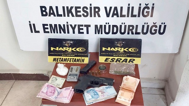 Balıkesir İl Emniyet Müdürlüğü ekiplerimiz; İl merkezi ve İlçelerde; emniyet, asayiş ve kamu düzeninin sağlanması ile suçların azaltılması, önlenmesi ve suçluların yakalanmasına yönelik çalışmalara aralıksız olarak devam ediyor.Balıkesir Valiliğinden yapılan basın açıklamasında, “27.09.2023 günü 2. Gündoğan Mahallesi Atay Caddesi üzerinde İl Emniyet Müdürlüğü Resmi ekiplerinin durumundan şüphelenerek bir süre takip ettiği aracı durdururak, Cumhuriyet Savcılığının vermiş olduğu adli arama kararına istinaden araçta yapılan kontrolde; 47,93 gram metamfetamin, 2,72 gram esrar, 1 adet hassas terazi, 1 adet uyuşturucu öğütme aparatı, 1 adet ibaresiz silah, silaha ait 4 adet fişek, suçtan elde edildiği düşünülen 18.265 TL ele geçirilmiştir. Şahıs gerekli adli işlemlerin yapılması amacıyla Narkotik Şube Müdürlüğüne teslim edilmiştir. Konu ile ilgili hakkında işlem yapılan B.A. isimli şahıs uyuşturucu madde ticareti yapma suçuyla adli birimce tutuklanmıştır. Kamuoyuna saygıyla duyurulur.” denildi. Haber: Aydın DEMİRKAYA