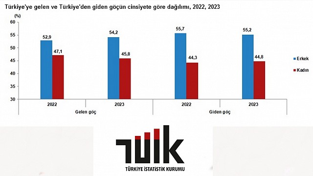 Türkiye'den yurt dışına göç eden kişi sayısı 2023 yılında bir önceki yıla göre %53 artarak 714 bin 579 oldu. Göç eden nüfusun %55,2'sini erkekler, %44,8'ini ise kadınlar oluşturdu. Türkiye'den yurt dışına giden nüfusun 291 bin 377'sini Türk vatandaşları, 423 bin 202'sini ise yabancı uyruklular oluşturdu.