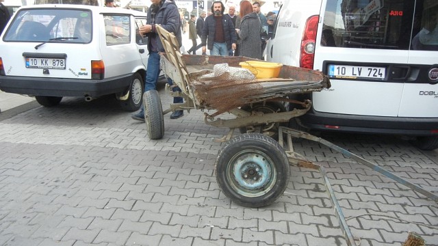 Balıkesir'in Edremit ilçesinde başı boş at arabası ortalığı birbirine kattı. Çayiçi Caddesi'nde sürücüsü olmadan dört nala koşarak araçlara zor anlar yaşatan at arabası, Cumhuriyet Meydanı'nda karşıdan karşıya geçmek isteyen bir yayaya çarptı. Bir kadına çarpan at arabası bir başka araca vurarak durabildi. Kontrolden çıkan at arabasının altında kalan H.C. yaralandı. H.C'nin annesi kızını yerde görünce bayıldı. At arabasının çarptığı yaralı kadın olay yerine gelen 112 ambulansı ile hastaneye sevk edildi. Yaralının hayati tehlikesinin olmadığı ve tedavi altına alındığı öğrenildi. At polis tarafından zapt edilirken, sahibi aranıyor. (İHA)