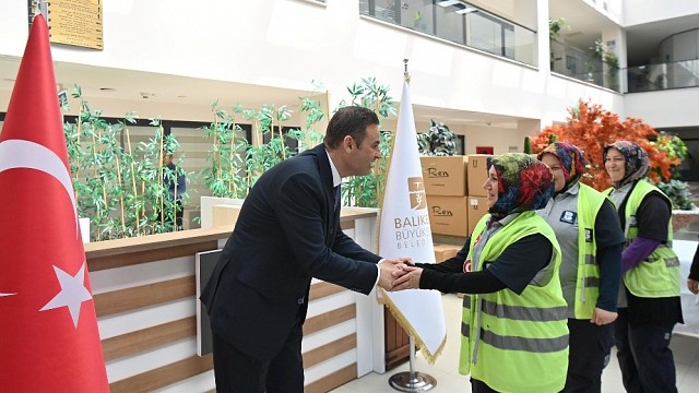 Yaklaşan Ramazan Bayramı dolayısıyla personeliyle bayramlaşmaya başlayan Balıkesir Büyükşehir Belediye Başkanı Ahmet Akın “Büyükşehir Ailem’le ilk bayramlaşmamız. Hep birlikte güzel bir uyum ve huzurla, Balıkesir için çalışmaya devam edeceğiz.” dedi. Balıkesir Büyükşehir Belediye Başkanı Ahmet Akın, yaklaşan Ramazan Bayramı dolayısıyla personeliyle bayramlaşıyor. Bayramlaşmaya dış birimlerden başlayan Başkan Ahmet Akın; Yol Yapım, Bakım ve Onarım, Fen İşleri ve Kent Estetiği Dairesi’ne bağlı birimlerin bulunduğu kampüs ile Balıkesir Su ve Kanalizasyon İşleri Genel Müdürlüğü (BASKİ) binasını gezerek tüm personelle temasa geçti. Personelin sevgi seliyle karşılanan Başkan Ahmet Akın, çalışma arkadaşlarına işlerinde kolaylıklar dileyip, Ramazan Bayramlarını tebrik ederek “Biz, Balıkesir Büyükşehir Belediyesi olarak kocaman bir aileyiz. Büyükşehir Ailem’le ilk bayramlaşmamız. Tüm personelimiz bizim için çok kıymetli ve değerli. Hep birlikte güzel bir uyum ve huzurla, Balıkesir için çalışmaya devam edeceğiz.” diye konuştu.