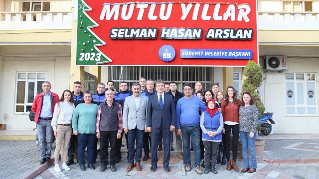 Edremit Belediye Başkanı Selman Hasan Arslan, 2022 yılının son iş gününde belediyenin hizmet birimlerini dolaşarak çalışma arkadaşlarının yeni yılını kutladı. Edremit Belediye başkanı Selman Hasan Arslan, 2022 yılının son mesai gününde belediyenin Altınoluk, Güre, Akçay, Zeytinli Altınkum, Kadıköy şubeleri ile merkez hizmet binasında ki birimleri ziyaret ederek personelin yeni yılını kutladı. Edremit Belediyesi’nin büyük bir aile olduğunu kaydeden Başkan Arslan, “2022 yılında 160 bin Edremitli hemşehrimize en iyi hizmeti sunabilmek için tüm mesai arkadaşlarımızla özverili bir şekilde çalıştık. Yeni yılda da birlik ve beraberlik içerisinde değerli halkımıza hizmet etmeye devam edeceğiz. Bu kentin gelişmesi ve güzelleşmesi için her bir noktasında emeği olan çalışma arkadaşlarıma teşekkürlerimi sunuyorum. Büyük Edremit Belediyesi ailemizde ki tüm mesai arkadaşlarımın ve ailelerinin yeni yılını kutluyor, sağlık, mutluluk ve başarılar diliyorum” dedi.