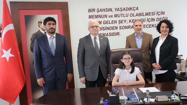 Burhaniye Belediye Başkanı Ali Kemal Deveciler, 23 Nisan Ulusal Egemenlik ve Çocuk Bayramı dolayısıyla makamını Ortaokul öğrencisi Göksu Danışmaz’a devretti. 23 Nisan Ulusal Egemenlik Çocuk Bayramı dolayısıyla Burhaniye Belediye Başkanlığı makamına Şehit Ahmet Çelik Ortaokulu Öğrencisi Göksu Danışmaz oturdu. Belediye çalışmaları hakkında Ali Kemal Deveciler’den bilgiler alan Danışmaz, ilçede yapılması gereken tespit ettiği eksikliklerle ilgili gerekli birim müdürlerini çağırarak talimatlar verdi. Makamda yaptığı açıklamada özellikle sokak hayvanları ve çocukların vakit geçirecekleri parkların çoğaltılmasını isteyen Göksu Danışmaz, doğalgazdan dolayı bozulan yollarında düzeltilmesini söyleyerek, Belediye Park Bahçeler, Fen İşleri ve Sağlık İşleri Müdürlerini çağırarak bu konularda gerekli çalışmaların yapılmasını söyledi. Ali Kemal Deveciler’le sohbet eden Danışmaz, Belediye Başkanlığının güzel olduğunu fakat İngilizce öğretmeni olmak istediğini belirtti. Ali Kemal Deveciler’de, Danışmaz ile aynı okulda okuduğunu söyleyerek Danışmaz’a derslerinde başarılar diledi. Atatürk’ün bu ulusal bayramı çocuklara armağan ettiğini belirtip, Danışmaz’ın bahtının açık olmasını dileyen Deveciler “İlerde umarım bu makamlarda kendisini görürüz, göreceğimize de inanıyorum” dedi. Göksu Danışmaz ise “Bugün burada olduğum için çok mutluyum. Beni ağırlayan büyüklerime çok teşekkür ediyorum. Bayramımız kutlu olsun” dedi. Belediye Başkanı Ali Kemal Deveciler’in kendisine hediye ve çiçek takdim ettiği Danışmaz, Okul Müdürü Sait Yılmaz ve Öğretmeniyle birlikte Başkanlık makam aracı ve özel makam şoförüyle birlikte okuluna gitti.