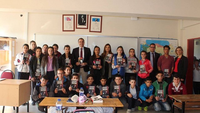 Balıkesir Valiliği, Ayvalık Kaymakamlığı, Ayvalık Belediyesi ve İlçe Milli Eğitim Müdürlüğü iş birliği ile hayata geçirilen Kitaptan Kanatlar Projesi için, Ayvalık Belediye Başkanı Rahmi Gençer, geçtiğimiz gün saat 09:30'da Altınova Cihan Yorgun Orta Okuluna geldi. Proje çocuklara, kitap okuma alışkanlığının geliştirilmesinin yanı sıra öğrencilerin kentin yöneticileri ile bir araya gelmesi sağlanıyor. Okul Müdürü Atiye Duran yönetiminde Rahmi Gençer 8/D sınıfında gelerek 20 dakika kitap okuma, 20 dakika da sohbet programını gerçekleştirdi. BAŞKAN GENÇER''HAYATTA BAŞARI ELDE ETMEK İSTİYORSANIZ, NUTUK'U ÇOK İYİ OKUMALISINIZ'' Her okul ziyaretinde olduğu gibi Ulu Önder Mustafa Kemal Atatürk'ün eserini heden Başkan Gençer, ''Hayata kitap okuma alışkanlığı kazanarak başlarsanız, çok rahat edersiniz. Ben bu alışkanlığım sayesinde, toplum önünde rahatça konuşabiliyorum. Hayatta başarı elde etmek istiyorsanız, Nutuk'u çok iyi okumalısınız.''dedi.
