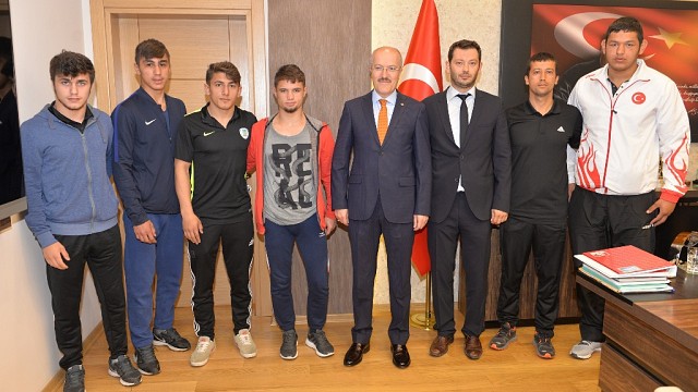 BAŞKAN KAFAOĞLU GÜREŞÇİLERİ KUTLADI