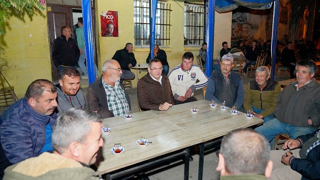 Ayvalık Belediye Başkanı Mesut Ergin, kent tarımın merkezi kırsal mahalle ziyaretlerini sürdürüyor. 16 kırsal mahallede düzenli aralıklarla vatandaşlarla bir araya gelen Başkan Ergin sorunları ilk ağızdan dinliyor, not alıyor, sorunların çözümlerini vatandaşlarla birlikte değerlendiriyor. Çamoba Mahallesinde vatandaşlarla buluşan Ergin, “Toprağımızda bereketi işleyen hemşehrilerimizle akşam saatlerinde köy meydanında çaylarımızı içtik. Hepsinin görüş ve düşüncelerini dinledik, birlik ve beraberlik içinde sohbet ettik. Muhtarımız Mahmut Çobanoğlu ile köyümüzde yaptıklarımızı, yapacaklarımızı konuştuk. Çiftçimize, köylümüze, tüm hemşehrilerimize hizmet için daima ileri” diye konuştu. Başkan Ergin, “Ayvalık ilçemizde her bölgede olduğu gibi, 16 kırsal mahallemizin de tamamında hizmet ve proje üretiyoruz. Daha önce ihmal edilmiş, hizmet konusunda eksik kalmış mahallelerimiz de vardı. Biz bu konuda da hassasiyetle çalışmalarımızı sürdürüyoruz. Hemşehrilerimize katkı sunmak ve ulaşım kalitesini artırmak için de büyük bir mücadele ortaya koyuyoruz” dedi. Kırsal mahallelerde tarım ve hayvancılığa dayalı üretime destek olmak için yol sorunlarını bütünüyle çözmeyi hedeflediklerini kaydeden Başkan Ergin, “Göreve geldiğimiz günden beri kırsal mahallelerin yol sorunlarını çözmek için belediye kaynaklarının önemli bir kısmını bu mahallelerimizde kullandık. Şu anda kırsal mahallelerimizin ulaşımını daha güvenli ve konforlu hale getirmek için belediye ekiplerimiz çalışmalarını titizlikle sürdürüyor. Zeytin hasat döneminde tarım arazilerinin yollarında da çalışmalar yaptık. Tarım ve hayvancılığın yoğun olarak yapıldığı kırsal mahallelerimizde vatandaşlarımızın üretim gücüne bir nebze de olsa katkı sunmak ve ulaşım kalitesini artırmak için büyük bir mücadele ortaya koyuyoruz” dedi.