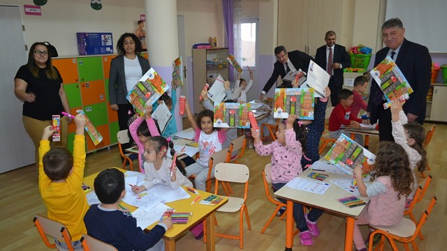 Ayvacık Belediyesi tarafından yaptırılan ‘’Çanakkale’yi Boyuyoruz’’ şeklinde hazırlanan boyama kitabı, ilçedeki tüm ana sınıfı ve İlkokul birinci sınıf öğrencilerine belediye başkanı tarafından tek tek dağıtıldı. Yaptığı ve ürettiği projeler ile ilçe halkını takdirini toplayan Ayvacık Belediye Başkanı Mehmet Ünal Şahin, şimdi de okul hayatına yeni başlayan minik öğrencileri okullarında ziyaret ederek, birer adet ‘’Çanakkale’yi Boyuyoruz’’ boyama kitapçığı ve kalemi hediye etti. Ayvacık Belediye Başkanı Mehmet Ünal Şahin yaptığı açıklamada; ‘’Bugün yapmakta olduğumuz bu çalışma belediyemizin kültür ve sosyal alanda yaptığı çalışmalardan bir tanesidir. Bildiğiniz gibi göreve geldiğimiz ilk günden itibaren kültür çalışmalarına, sanatsal ve sosyal çalışmalara büyük bir ağırlık veriyoruz. Çünkü belediyecilik sadece yol ve bina yapmak değil onun dışında da belediyenin yapması gereken birçok çalışmaları vardır. Bu yaptığımız çalışma da onlardan birisidir’’ dedi.Şahin ilçede Anaokul ve ilkokul çağına gelmiş öğrencilerimize Çanakkale’yi Boyuyoruz adı altında hazırlanan boyama kitapçığı ve boyama kalemini hediye ettiklerini kaydederek; “ İyi bir geleceğe adım atan siz çocuklarımızı seviyoruz ve önce yaşadığımız il olan Çanakkale’mizin önemli tarihini, minik ellerinizle boyayarak öğrenmenizi istiyor, bu boyama kitabı ile güzel saatler geçirmenizi diliyor, gözlerinizden öpüyorum’’ dedi. Çanakkale’nin tarihi yerlerini tanıyorlar… Kentteki doğal ve tarihi yerlerin karakalem çizildiği boyama kitapçığında, Çanakkale Şehitler Abidesi, Troia Atı, Tarihi Saat Kulesi, Bozcaada, Kazdağları (İda Güzellik yarışması), Anafartalar Kahramanı Mustafa Kemal, Mehmet Akif Ersoy Evi ve Müzesi, Assos Antik Kenti, AlexandriaTroas, Kilitbahir Kalesi, Aynalı Çarşı, 57. Alay Şehitliği, Seyit Onbaşı, Bigalı Köyü Atatürk Evi, Conkbayırı Atatürk Heykeli, Mehmetçiğe Saygı Anıtı, Yahya Çavuş Anıtı, Nusrat Mayın Gemisi, Gelibolu Piri Reis, ApollonSmintheus gibi Çanakkale için önemli yerler bulunuyor.Kitabın içinde bulunan çizimlerçocukların yaşadıkları yeri tanımaları açısından büyük önem taşıyor. Ziyarette keyifli anlar yaşandı Ayvacık Vilayetler Hizmet Birliği Anaokulu, Çankaya İlkokulunuziyaret eden Belediye Başkanı Mehmet Ünal Şahin anasınıfı ve birinci sınıfa yeni başlayan minik öğrencilere boyama kitaplarını bizzat dağıttı. Öğrencileri sınıflarında ziyaret eden Başkan Mehmet Ünal Şahin, çocuklar ile keyifli anlar yaşadı. Geleceğimizin teminatı çocuklarımızdır… Geleceğimizin teminatı olan çocuklarımızın daha iyi yetişmeleri, vatana, millete yararlı bireyler olmaları ve ülkemizi daha da ilerilere taşımaları için, eğitimlerini en iyi şekilde almaları ve sosyal sorumluluk bilinci kazanmaları için ellerinden geleni yapacaklarını ifade eden Başkan Şahin, “Minik yavrularımızın okul ve öğretmenle ilk tanıştığı yer Anasınıflarıdır. İlçemizde eğitim çıtamızın yükselmesi için, okul öncesi eğitim çok önemlidir. Şimdi burada okuyan, meraklı gözleriyle bize bakan bu yavrularımız yarının idarecileri olacaktır. Çocuklar geleceğimizdir. Ben bu vesile ile geleceğe umutla bakan bu yavrularımıza başarılar diliyorum" şeklinde konuştu.