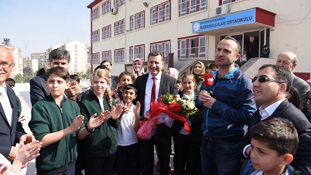 Karahallılar Ortaokulu öğrencileri, okullarına basketbol, futbol, voleybol sahaları kazandıran ve binlerce liralık yatırım yapan Karesi Belediye Başkanı Yücel Yılmaz'ın etrafında sevgi yumağı oluşturdu. Başkan Yılmaz öğrencilerin isteği üzerine 2 adet de masa tenisi hediye etti. Karesi Belediye Başkanı Yücel Yılmaz, Ak Parti Karesi İlçe Başkanı Kemal Aydemir, Karesi İlçe Milli Eğitim Müdürü Ramazan Konakbay, Karahallılar Ortaokulu'nu ziyaret etti. Yoğun referandum programına rağmen belediyecilik faaliyetlerini de aksatmadan yürüten Başkan Yılmaz, gece gündüz sahada ter döküyor. Başkan Yılmaz Karahallılar Ortaokulu'na müjdelerle gitti. Sosyal donatı alanlarının oluşturulduğu okula Başkan Yılmaz bu kez 2 adet masa tenisi hediye etti. Masa tenisini gören öğrenciler sevinçten Başkan Yılmaz'ın etrafında sevgi yumağı oluşturup, sarıldı. Öğrencilerin bu mutluluğuna ortak olmak isteyen Başkan Yılmaz, öğrencilerle masa tenisi oynadı. Karahallılar baştan aşağı değişti 'Okullar Hayat Olsun' projesi kapsamında 38 okulda 8 milyon liralık yatırım yapan Karesi Belediyesi, yine proje kapsamında Karahallılar Ortaokulu'nda hummalı bir çalışma başlattı. Karesi Belediyesi Park Bahçeler Müdürlüğü ve Fen İşleri Müdürlüğü okulun bahçesinde; 160 metre uzunluğunda duvarını, bahçe zeminlerini yenilendi, bank ve piknik masası koydu, 2 adet tenis masası hediye etti, ferforje ve halı saha yapıldı. Peyzaj çalışmalarının devam ettiği okulun bahçesine bir voleybol sahası, basketbol sahası, çeşme yapımı ve merdivenlere karo taş uygulamaları da başladı. "Çocuklarımız sağlık gelişsin istiyoruz" "Çocuklar bizim geleceğimiz" diyen Karesi Belediye Başkanı Yücel Yılmaz, "Çocuklarımızın daha iyi şartlarda kaliteli eğitim alabilmeleri için biz de belediye olarak üzerimize düşen görevleri yerine getirmeye çalışıyoruz. Bu zamana kadar 38 okulun fiziki şartlarını yerine getirmek için 8 milyon lira para harcadık, harcamaya da devam edeceğiz. Çocuklarımız daha iyi alanlarda spor yaparak vücut gelişimlerini sağlık bir şekilde tamamlamalarını istiyoruz. Bu sosyal donatı alanları her okulda sağlanmalıdır. Çünkü geleceğimizin teminatı olan çocuklarımız daha iyi yetişmelidir. Bu alanlar sayesinde de çocuklar telefon tablet ve bilgisayar gibi bağımlılık yapan araçlardan uzaklaşarak, toplumun içinde sanaldan uzak bir şekilde büyüyecektir. Bu şekilde çocuklar gerçek hayata daha kolay adapte olacaktır" dedi. (İHA)