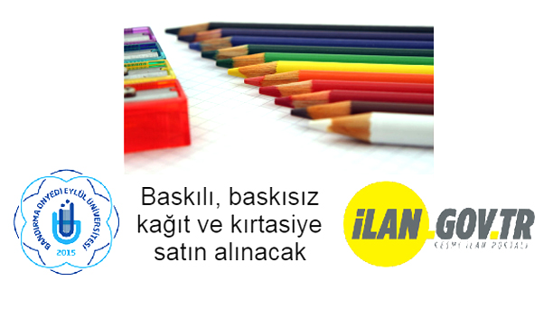 Bandırma Onyedi Eylül Üniversitesi İdari ve Mali İşler Daire Başkanlığı tarafından Baskılı, baskısız kağıt ve kırtasiye satın alınacaktır.