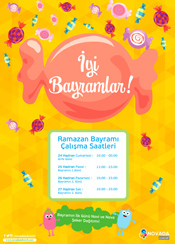Bayramda alışveriş ve eğlencenin keyfi uzasın diye 24 Haziran Cumartesi (arife) günü açılış 10.00 – kapanış 24.00 oluyor. Arife günü ve bayramın 1. günü Novi ve Nova ile birlikte gerçekleşecek atölyeler ve eğlenceli aktivitelerle çocuklar keyif dolu vakit geçiriyor. Körfez'in en büyük alışveriş ve yaşam merkezi olan Novada Edremit AVM, bu yılda keyifli bir alışveriş, eğlenceli etkinlikler ve lezzet dolu bir bayram için sizleri bekliyor. Alışveriş ve eğlencenin keyfi uzasın diye 24 Haziran Cumartesi (arife) günü 10.00'da açılarak, akşam 24.00'a kadar değerli ziyaretçilerini bekliyor olacak. Bayramın 1. günü ise 13.00’da açılarak, akşam 23.00’a kadar hizmet verecek olan Novada; bayramın 2. ve 3. günü normal çalışma saatlerine dönerek sabah 10.00 ile akşam 23.00 saatleri arasında hizmet vermeye devam edecek. Nova ve Novi ile Bayram Eğlencesi Novada Edremit, bu bayram da çocukları unutmayarak onlara hem eğitici hem de eğlendirici aktiviteler sunuyor. Arife ve bayramın 1. günü yeme – içme bölümünde gerçekleştirilecek olan “Bayrama Özel Şeker Kesesi Süsleme Atölyesi” yanında palyaçolar ile birlikte yüz boyama, küçük yarışmalar ve balon dağıtımı ile çocuklar bayram çoşkusunu dolu dolu yaşayacak. Ayrıca Novi ve Nova'nın gün boyunca dağıtacağı şekerler ile Novada'ya gelen ziyaretçiler şeker tadında bir bayram geçirecekler.
