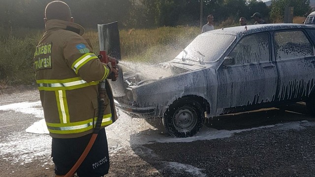 Balıkesir'in Kepsut ilçesinde benzin hortumunun yakıt kaçırdığı belirlenen otomobil, seyir halindeyken yandı. Edinilen bilgiye göre, olay Kepsut ilçesi Kızıloluk Mahallesi'nde Dursunbey yolu üzerinde meydana geldi. İbrahim Bozbey'e ait 10 EY 359 plakalı otomobil seyir halindeyken alev aldı. Otomobilden inen Bozbey yangın söndürme tüpüyle alevlere müdahale etti. İhbar üzerine olay yerine gelen itfaiye kipleri yangını söndürdü. Otomobilin benzin hortumunun yakıt kaçırması sonucu yangının çıktığı öğrenildi. Olayla ilgili tahkikat sürüyor. (İHA)