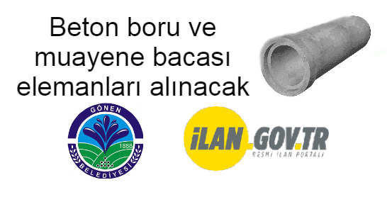 Gönen Belediye Başkanlığı tarafından Beton boru ve muayene bacası elemanları alınacaktır.